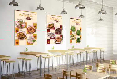 Menu tiệm có đủ các món từ thịt lợn, thịt bò, thịt gà, hải sản (cá, tôm,..), rau củ theo mùa